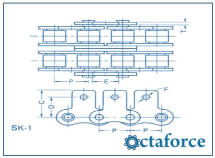 Octaforce is manufacturer and Exporter of ANSI Standard Double-Strand Roller Chain – SK-1 Attachment as part of Roller Chains , Engineering Chain , Conveyor Chains ,Specialty Chain, Corrosion Resistant Standard Roller Chain, Attachment Chain, Leaf Chain, Agricultural chain , Transmission Chain, Conveyor Corrosion Resistant Chain