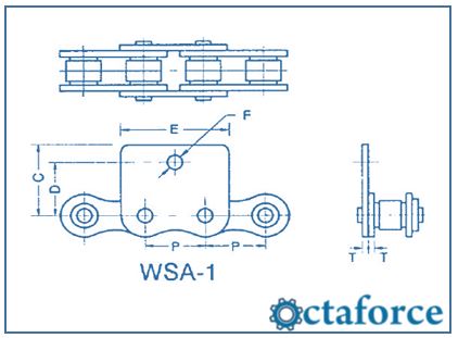 Octaforce is manufacturer and Exporter of ANSI Standard Roller Chain – WSA-1 Wide Contour Attachment as part of Roller Chains , Engineering Chain , Conveyor Chains ,Specialty Chain, Corrosion Resistant Standard Roller Chain, Attachment Chain, Leaf Chain, Agricultural chain , Transmission Chain, Conveyor Corrosion Resistant Chain