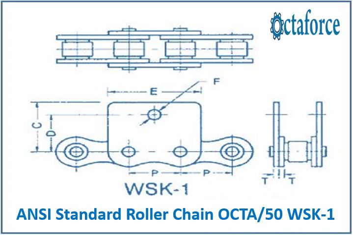We are Distributors, Stockists and Dealers of OCTA/50 WSK-1, ANSI Standard Roller Chain with WSK-1 Wide Contour Attachment and 10B-1 Chain with WSK-1 attachment. We can provide you 50 WSK-1 ANSI Standard Roller Chain with WSK-1 Wide Contour Attachment 10B-1 Chain with WSK-1 attachment at Best price.