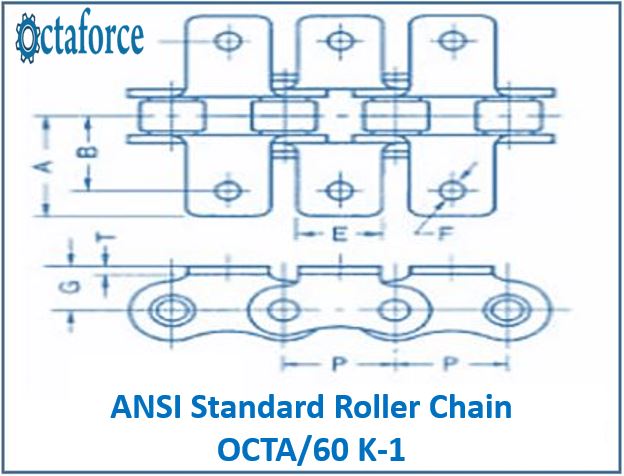 We are Distributors, Stockists and Dealers of OCTA/60 K-1, ANSI Standard Roller Chain with K-1 Attachment and 12B-1 Chain with K-1 attachment. We can provide you 60 K-1 ANSI Standard Roller Chain with K-1 Attachment 12B-1 Chain with K-1 attachment at Best price.