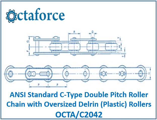 We are Distributors, Stockists and Dealers of OCTA/C2042 ANSI Standard C-Type Double Pitch Roller Chain with Oversized Delrin (Plastic) Rollers