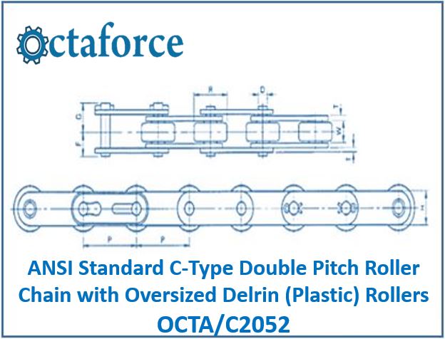 We are Distributors, Stockists and Dealers of OCTA/C2052 ANSI Standard C-Type Double Pitch Roller Chain with Oversized Delrin (Plastic) Rollers