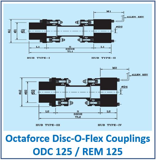 Octaforce Disc-O-Flex Couplings ODC 125 / REM 125 couplings are fully metallic, easy-to-install couplings with several key features: