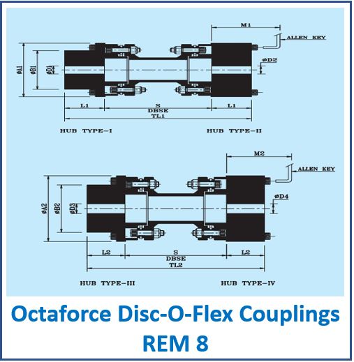 Octaforce Disc-O-Flex Couplings ODC 8 / REM 8 couplings are fully metallic, easy-to-install couplings with several key features: